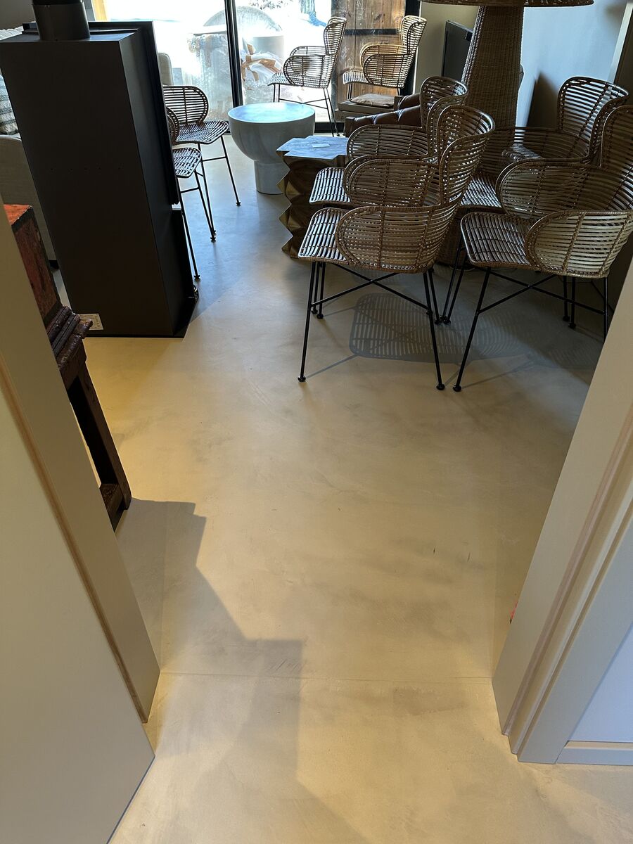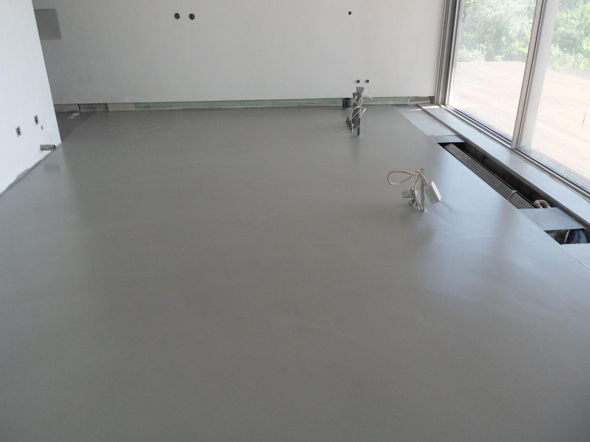 Aplicação em pavimentos: É a utilização mais comum, criando pavimentos contínuos e resistentes ao tráfego em salas de estar, espaços comerciais e escritórios. O processo de aplicação inclui sempre uma camada de primário (promotor de aderência), as camadas de base e acabamento do microcimento e, por fim, a aplicação de um verniz de poliuretano de alta resistência para selagem e impermeabilização.
