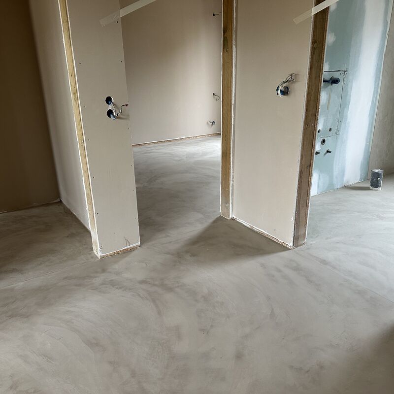 Resistência e Impermeabilidade: Após a selagem, o Microcimento é resistente ao desgaste, à abrasão (semelhante à madeira natural) e torna-se impermeável, sendo perfeito para casas de banho, bases de duche e cozinhas.
