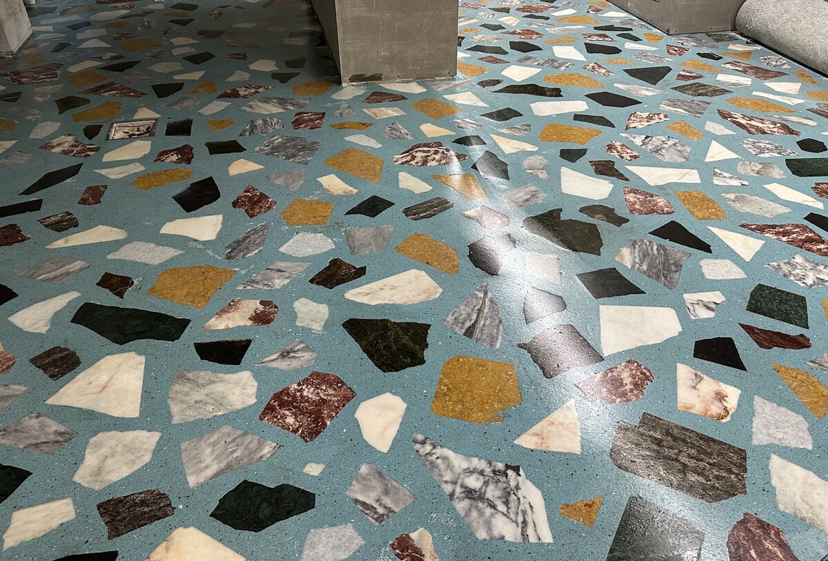 Durabilidade Extrema: O Terrazzo é conhecido pela sua longevidade, resistindo ao tráfego intenso e ao desgaste por décadas.